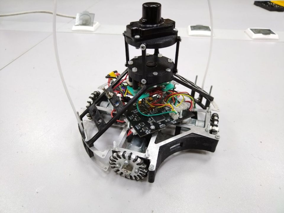 Главными особенностями и преимуществами конструкции являются омни-платформа, благодаря которой робот может свободно перемещаться по полю, не поворачиваясь при этом вокруг своей оси; центр тяжести робота, который находится максимально низко и отцентрировано относительно окружности описывающей робота.